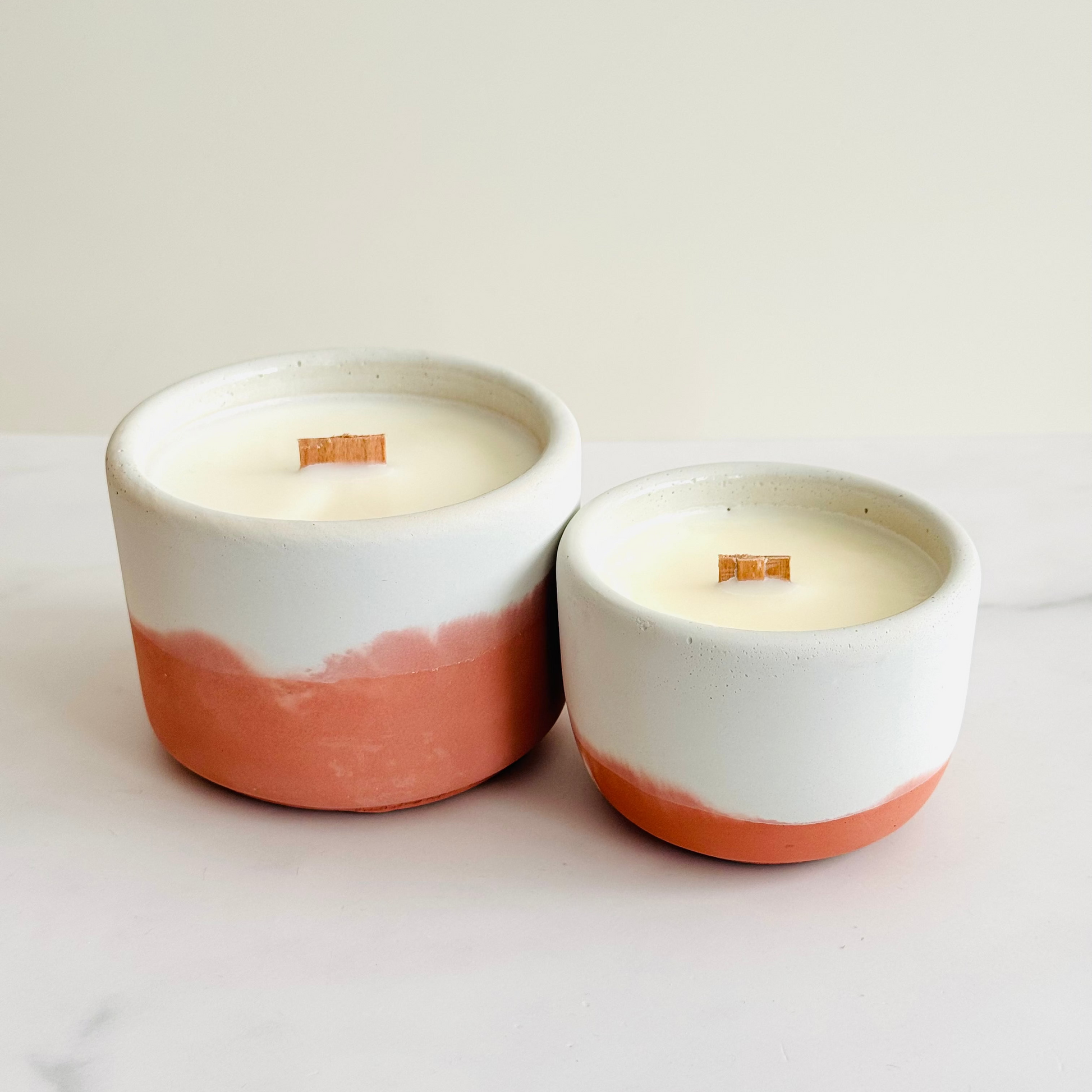 Our concrete candles are the perfect way to instantly modernize your living space. These simple vessels are moisture sealed and can be reused as a vase, planter or pen holder. The ideas are endless.