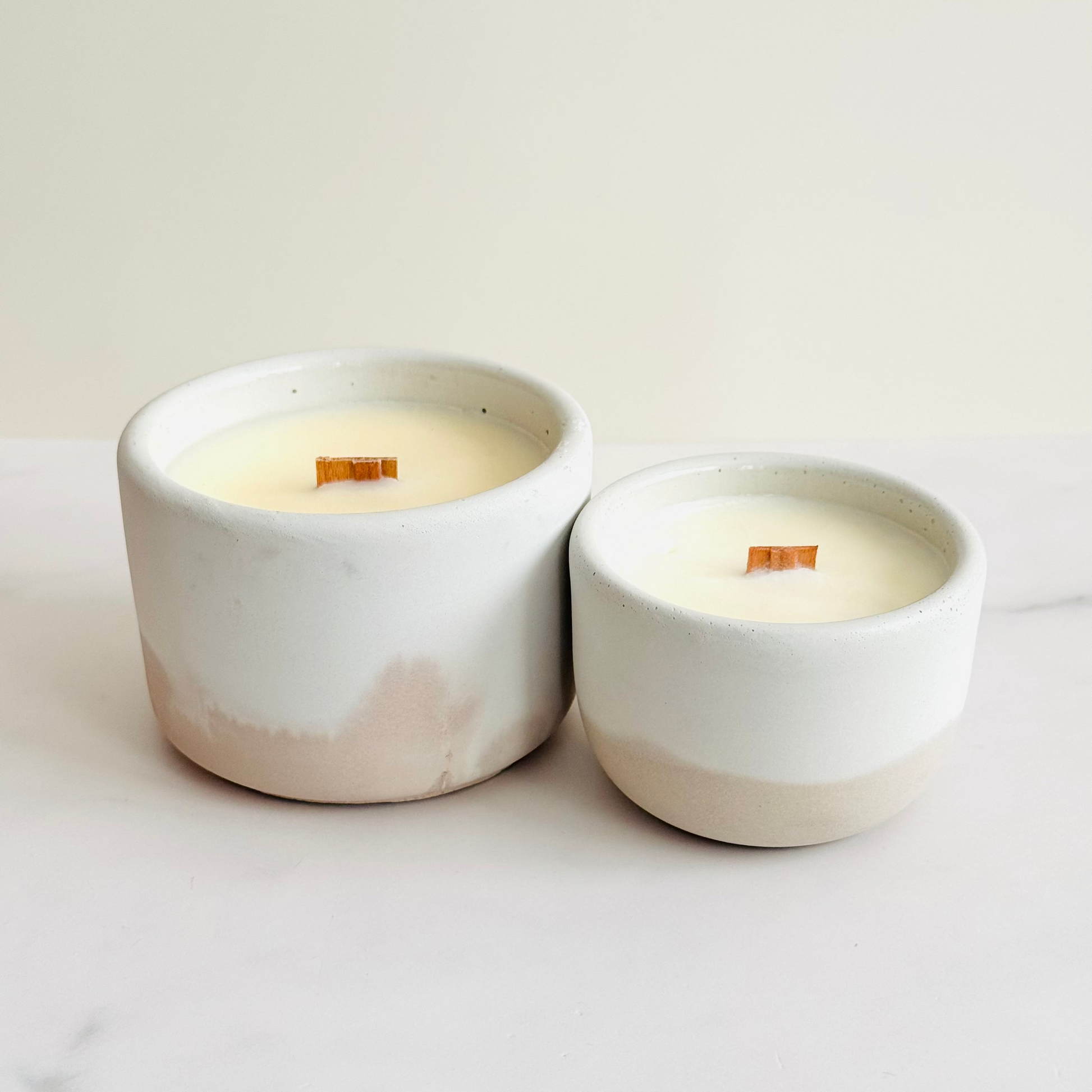 Our concrete candles are the perfect way to instantly modernize your living space. These simple vessels are moisture sealed and can be reused as a vase, planter or pen holder. The ideas are endless.