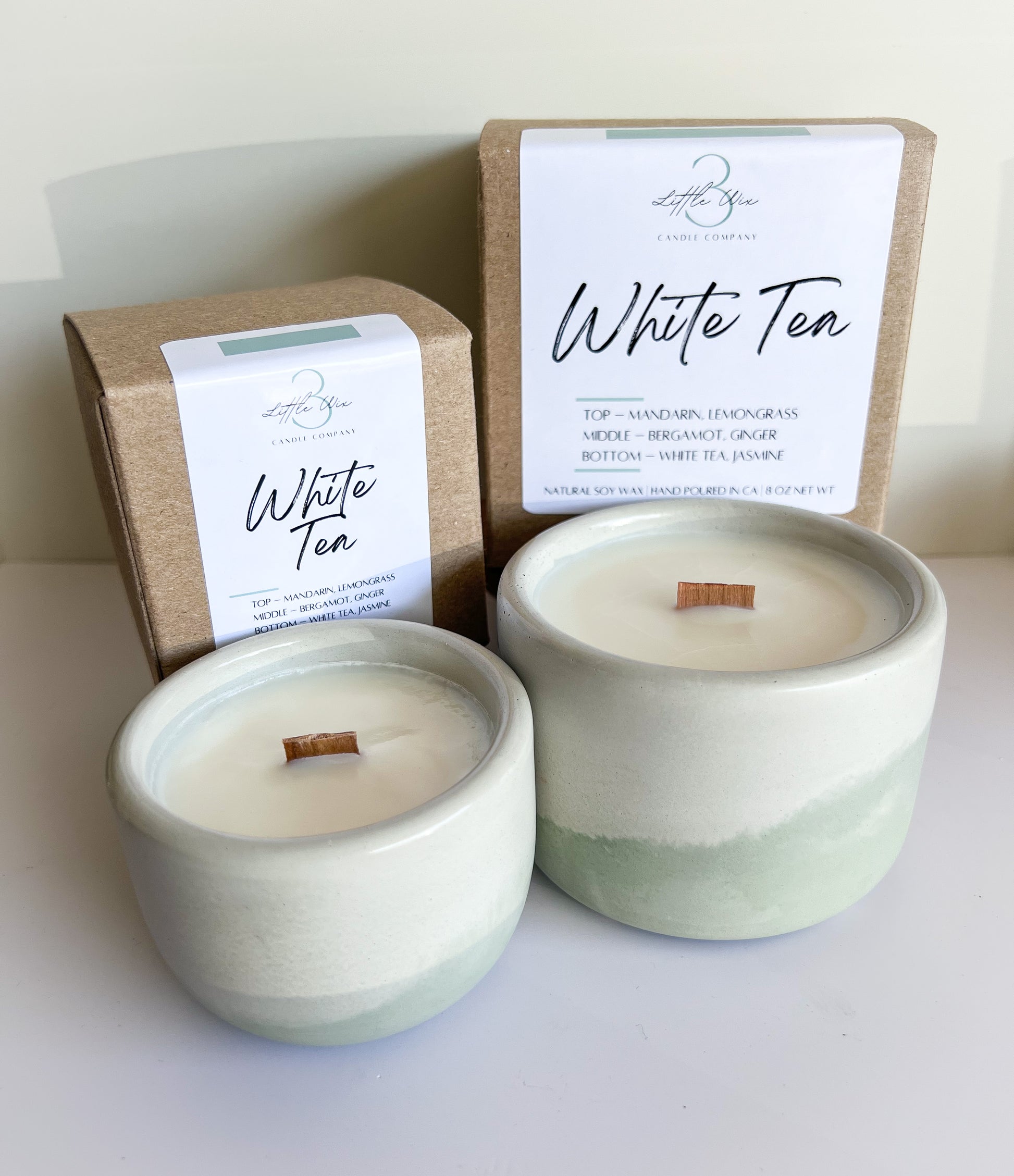 White Tea is the ultimate, luxurious spa fragrance oil. It starts with fresh citrusy top notes of mandarin and bergamot. Middle notes of thyme and ginger add an herbal spice that blends beautifully with delicate jasmine blossoms. Chrysanthemum petals and white tea buds round out the base of this exquisite fragrance. White Tea is infused with a dozen essential oils including jasmine, bergamot, mandarin, lemon, and ginger which all add to the natural quality of the scent. Sandalwood, nutmeg, and patchouli essential oils provide an earthy counter to this airy, ethereal fragrance.
