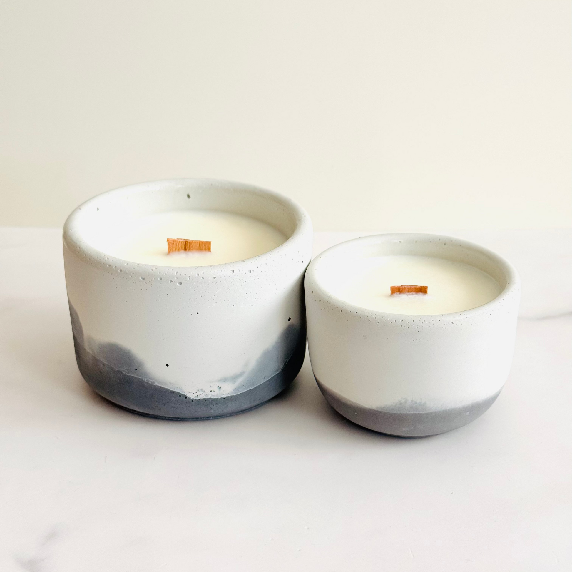 Our concrete candles are the perfect way to instantly modernize your living space. These simple vessels are moisture sealed and can be reused as a vase, planter or pen holder. The ideas are endless.